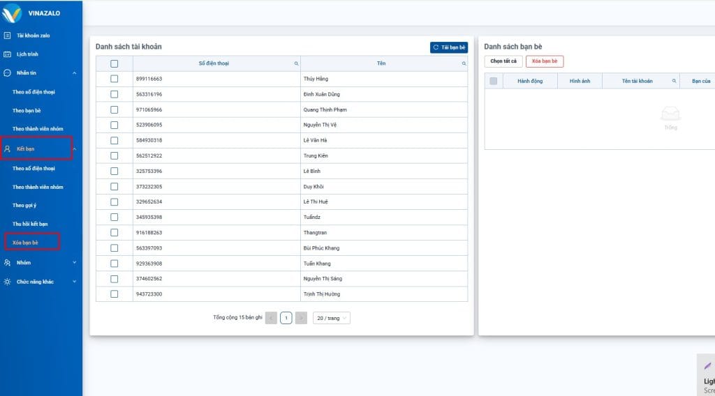 Khi danh sách bạn bè trên Zalo càng nhiều, thì việc xóa bạn bè Zalo rất khó khăn. Phần mềm Vina Zalo chính là công cụ hỗ trợ xóa bạn bè Zalo hàng loạt tự động. Thay vì phải vào từng tài khoản và xóa thủ công cực kỳ mất công và mất thời gian. Phần mềm cho phép lọc ra danh sách bạn bè không tương tác, bạn bè ảo, spam hoặc không còn phù hợp. Sau đó chỉ cần vài thao tác là có thể xóa toàn bộ một cách tự động. Dưới đây là hướng dẫn chi tiết để xóa bạn bè hàng loạt trên phần mềm Vina Zalo: