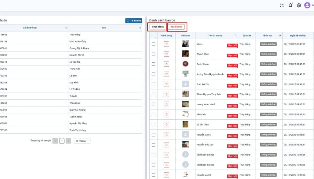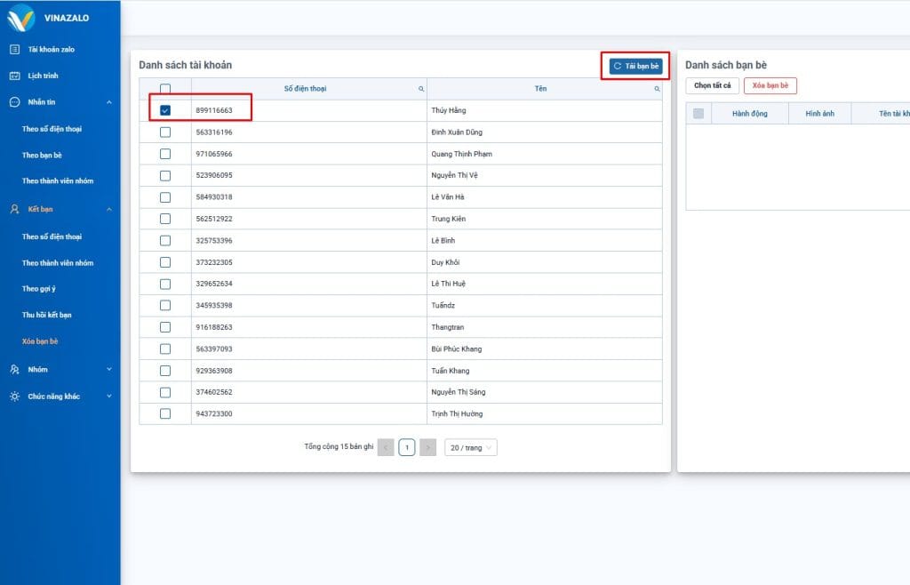 Bước 4: Lọc bạn bè cần xóa, sau đó chọn “Xóa bạn bè” phần mềm sẽ tự động xóa tất cả.