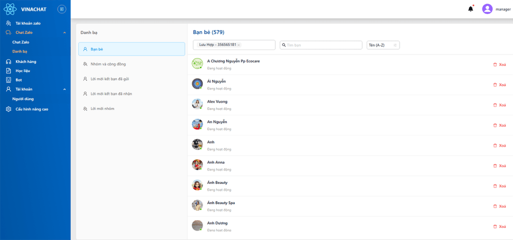 Phần mềm Vina Chat là công cụ hỗ trợ quản lý tin nhắn Zalo tập trung. Giúp người dùng quản lý được tin nhắn của khách hàng trên các tài khoản Zalo chỉ trên một cửa sổ trình duyệt. Thay vì sử dụng nhiều thiết bị để đăng nhập và check tin nhắn khách hàng. Người dùng giờ đây chỉ cần đăng nhập các nick Zalo lên Vina Chat để quản lý tin nhắn nhanh chóng, hiệu quả, tiết kiệm.